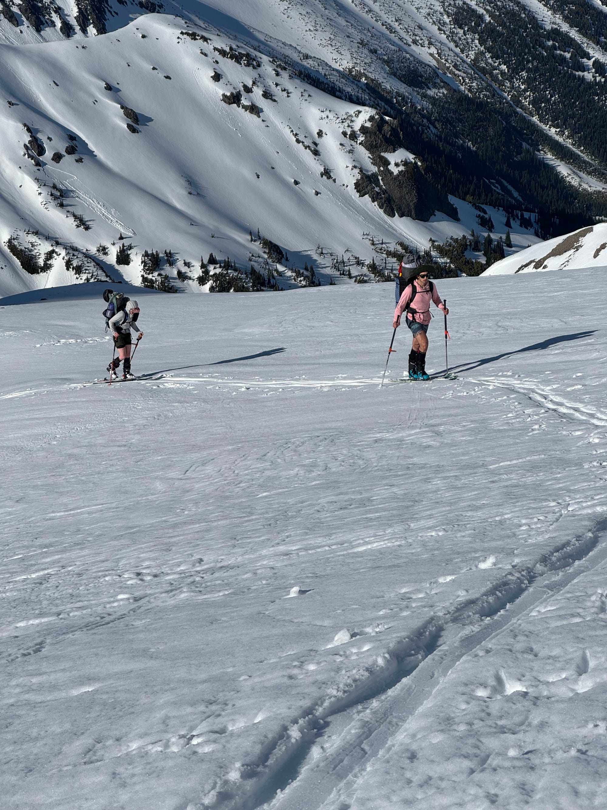 With the park gate still closed, we decided to bike to the trailhead on a Friday morning. Loaded with skis, overnight gear, and glacier kit, we pedaled slowly uphill to the Glacier Basin trail - 12 miles and 1,800 feet of climbing on the bike to start the day.