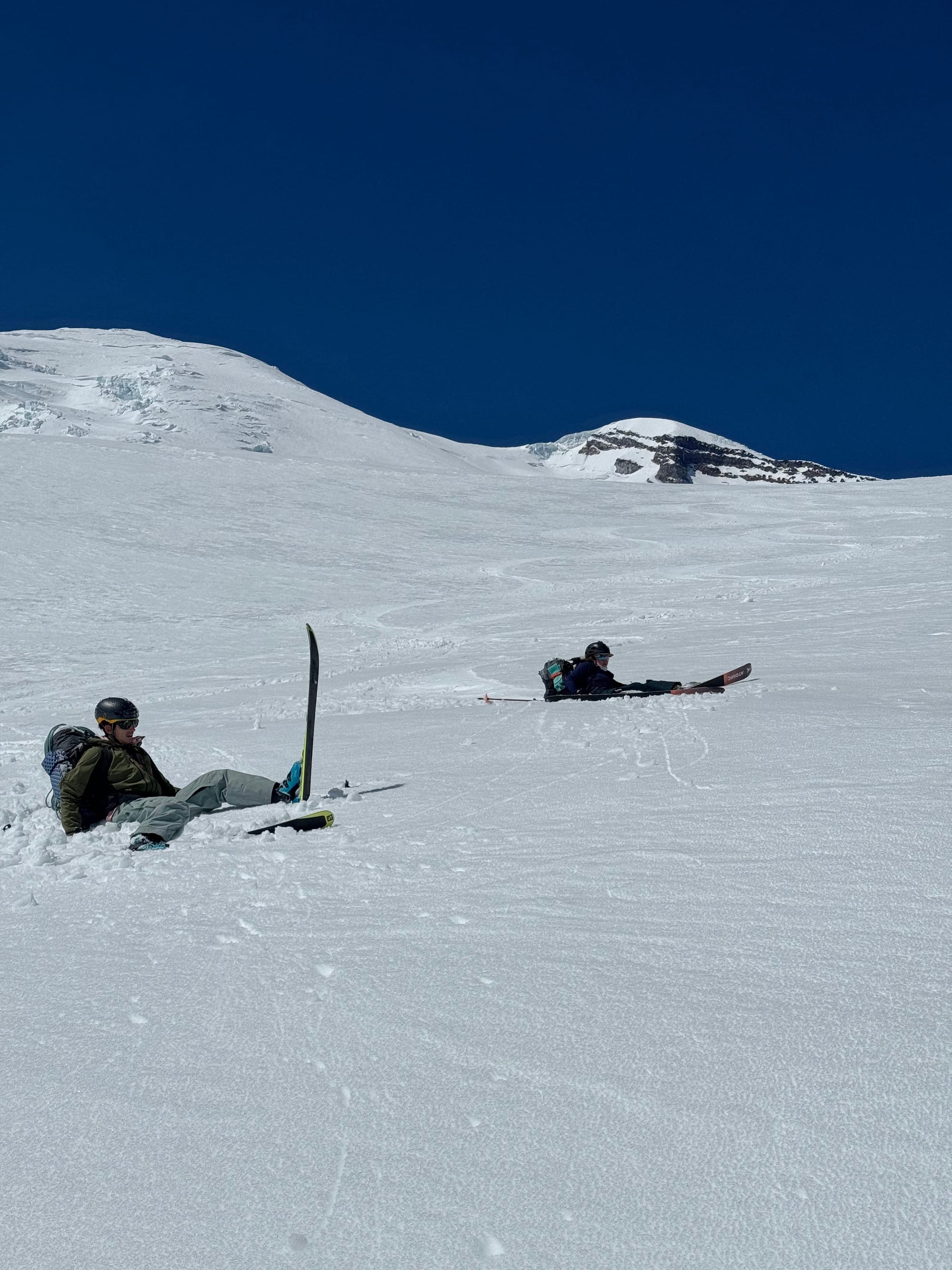 By the time we reached the top of the Inter Glacier, I was fully cooked. Head throbbing, stomach churning, full-on heat exhaustion had set in, and I was coming apart trying not to puke. I've never skinned this slowly in my life - I'd be shocked if I was covering 800 feet of climbing per hour. Water and gummy worms couldn't save me; all I could do was bargain with myself to ski down the shitty, refrozen pitch to Camp Schurman.